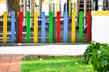 園児が安心して遊べるように、転倒や外への飛び出しを防ぐ安全設計のカラーフェンスを設置しています。